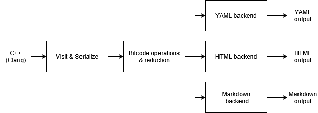 Clang-Doc has support for many formats. That sounds great in principal, but the backend pipeline’s execution made development extremely cumbersome.
